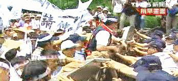 陳情農民和警方對峙,場面一度火爆。(圖片來源:臺灣TVBS電視臺)