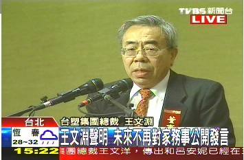 臺塑集團總裁王文淵表示臺塑集團未來不再對外發言王家家務。(圖片來源:臺灣TVBS電視臺)