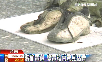 中國臺灣網7月3日消息 據臺灣TVBS電視臺報道,臺南縣一名小偷潛入歇業的工廠偷電纜,意外發現變電器箱里竟有一具白骨。據臺灣警察分析,死者可能是要偷電纜意外觸電,死亡時間超過2年;發現白骨的竊賊,也因為留在現場,通緝犯身份曝光,被帶回警局。