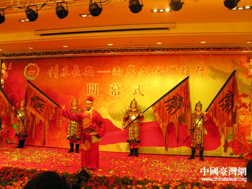 “情系長安——兩岸文化聯誼行”活動7月13日晚在西安開幕,圖為具有濃郁特色的開幕式典禮。(中國臺灣網 蕪同 攝)