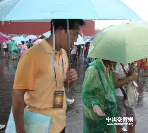 中國(guó)臺(tái)灣網(wǎng)7月17日北京消息 突降的一場(chǎng)傾盆大雨并沒(méi)有澆熄臺(tái)胞青年們游覽故宮的如火熱情,今天一早,臺(tái)胞青年千人夏令營(yíng)的營(yíng)員們便興致勃勃地來(lái)到了故宮博物院參觀游覽。