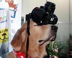 黃金獵犬CHERRY為了奪冠最后再加碼,頂上價值新臺幣7萬元的單反相機。(圖片來源:臺灣“今日新聞”)