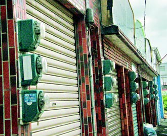 恒春鎮用電,每個電表補助140度,許多家庭化整為零,鎮內電表大增。這個小區住戶,每戶都裝三具電表。(來源:臺灣《聯合報》)