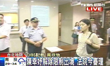 日前陳幸妤因偽證案被起訴,今日法官維持限制出境的裁定(圖片來源:臺灣TVBS電視臺)