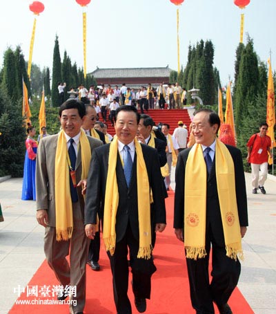 8月8日上午,“冀臺同胞共祭三祖大典”在張家口市涿鹿縣中華三祖堂廣場舉行,共祭黃帝、炎帝、蚩尤。海峽兩岸關系協會副會長王在希與新黨主席郁慕明也到場參加。(中國臺灣網 鐘寶華 攝)