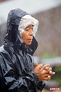 而臺東太麻里溪潰堤,更造成金峰鄉、太麻里鄉多個村落遭山洪吞噬,至少千人無家可歸。一名金峰鄉嘉蘭部落耆老獨自站在已成滾滾洪流的太麻里溪旁,仰視灰暗蒼天,向祖靈祈求平安,期盼“天地能安靜下來”。