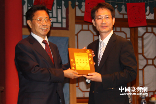 兩岸教育代表互贈禮物 (中國臺灣網(wǎng) 李丹 攝)