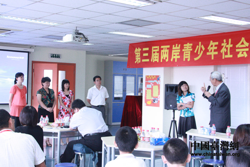 8月17日下午,參加第三屆兩岸青少年社會教育研討會的代表與中關村第四小學的師生聚集一堂,互動交流。
