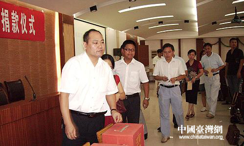 歷史罕見的特大臺風侵襲臺灣,造成重大生命財產損失。南昌市各界對身處海峽對岸的臺灣同胞的遭遇感同身受,積極伸出友愛援助之手。捐款儀式上,伴隨著一曲《愛的奉獻》,大家紛紛慷慨解囊,并衷心希望臺灣災區同胞盡早渡過難關,恢復正常的生產生活。南昌市臺辦負責人表示:“此次災情傳來,我市在第一時間與臺灣方面取得聯系,并組織大家捐款,體現了我們南昌人民和臺灣人民永遠是心手相連,風雨同舟!蹦喜信_聯與市臺協負責人表示,這次臺灣遭災后,牽動了很多同胞的心,許多會員企業都主動伸出援助之手,令人十分感動,這也再次證明了兩岸同胞是血濃于水、一脈相承的。