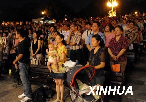 8月26日,在“臺北有愛、情系人間”七夕情人節祈福音樂會開始之際,臺北市民為風災罹難者祈禱。臺北市交響樂團用音樂為風災災民送上了祝福。圖片來源:新華社