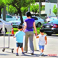 陳幸妤昨下午牽著兩個小兒子,接大兒子趙翊安放學(xué)回家。來源:臺灣《蘋果日報》