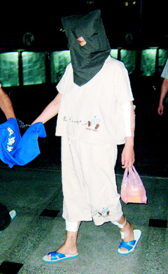 臺北縣板橋市簡姓婦人(戴頭罩)狂砍51刀殺害自己4個月大兒子的命案,檢方昨天起訴并求處無期徒刑。圖片來源:臺灣《聯(lián)合報(bào)》