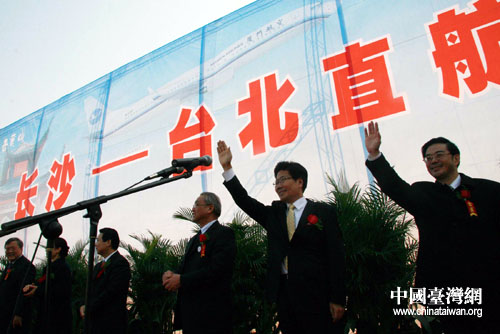 2009年1月,“長沙-臺北”空中直航開通,圖為首航儀式現(xiàn)場(資料圖片)
