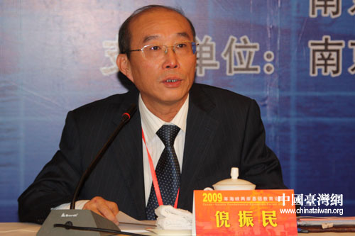 中國(guó)教育學(xué)會(huì)高中教育專(zhuān)業(yè)委員會(huì)副理事長(zhǎng)倪振民發(fā)言。(中國(guó)臺(tái)灣網(wǎng) 董潔 攝)