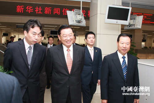 10月29日,新華社副總編輯彭樹杰、海協(xié)會副會長王在希陪同江丙坤一行參觀新華社新聞信息發(fā)稿中心。(中國臺灣網 田云鵬 攝)