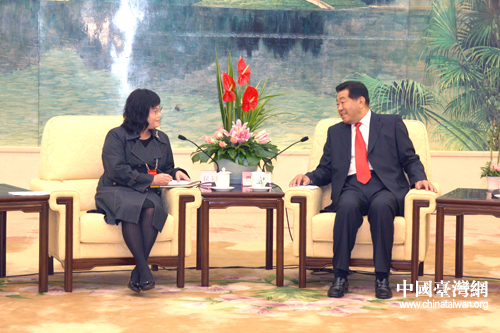 中國臺灣網11月3日北京消息 中共中央政治局常委、全國政協主席賈慶林在北京人民大會堂會見了出席“2009海峽兩岸工會論壇”的侯彩鳳等部分臺灣代表。中華全國總工會副主席、書記處第一書記孫春蘭,中臺辦、國臺辦主任王毅等參加了會見。