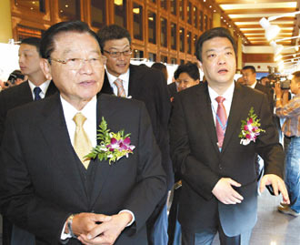 臺灣海基會董事長江丙坤(前左)昨天出席第十二屆京臺科技論壇開幕式。來源:臺灣《聯合報》