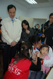 臺當局行政機構副負責人朱立倫前往桃園縣龜山鄉衛生所及大園鄉圳頭小學視察甲型H1N1流感疫苗施打情形,朱立倫先向準備施打的小朋友加油及鼓勵,也對于整個施打作業進行了解,對于醫護等人員的全力配合相當肯定。