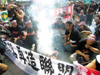 中國臺灣網11月20日消息 臺灣88水災已滿100天,高雄縣重災區少數民族還有1000多人回不了家,他們認為高雄縣政府不重視災民心聲,執意把少數民族遷到杉林鄉月眉地區,昨天與六龜鄉新開部落居民游行到縣政府抗議,燒狼煙高呼“我要回家”。民進黨籍高雄縣長楊秋興下午趕回縣政府與抗議民眾面對面,他最后在抗議民眾準備的承諾書上,簽字“同意”災民訴求,但拒絕署名。