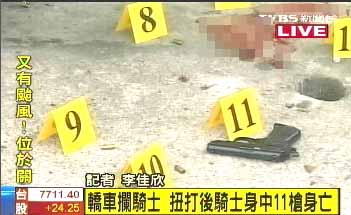 洪姓男子抵抗不從,其中1人即連續(xù)對他開槍,直到洪姓男子倒地后,兇手即將槍枝棄置現(xiàn)場,搭乘另一輛車逃逸。洪姓男子滿身鮮血倒臥在大馬路上,趕來的救護人員連忙把他送到奇美醫(yī)院急救,無奈傷勢太嚴重,身中11槍、幾乎槍槍對準了前胸,猶如行刑式槍殺。