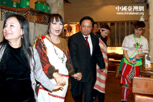 6日晚,全國臺聯會長梁國揚一行在臺北縣淡水與臺灣少數民族人士聯歡。(中國臺灣網 田云鵬 攝)