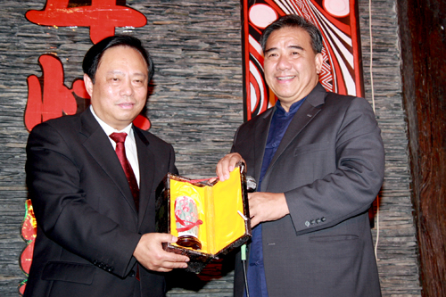 臺灣少數民族民意代表廖國棟代表鄉親歡迎梁國揚一行的到來,并感謝全國臺聯在去年12月至今年1月在北京主辦臺灣少數民族歷史文化展,使大陸民眾更多地了解了臺灣少數民族的歷史與文化。