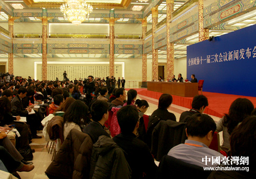 3月2日下午,全國政協(xié)十一屆三次會議召開首場新聞發(fā)布會。(中國臺灣網(wǎng) 張弛 攝)