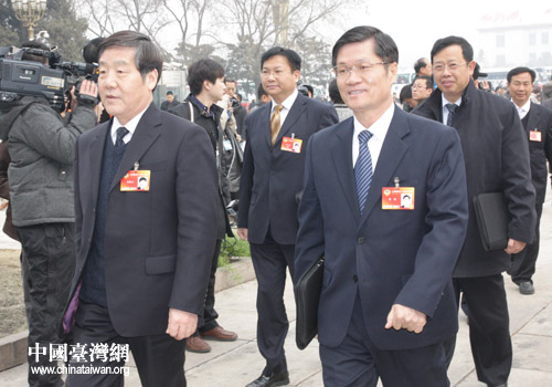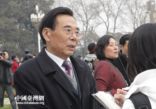 3日下午,全國政協(xié)十一屆三次會議在人民大會堂開幕。圖為政協(xié)委員在會議開始前接受記者采訪。(中國臺灣網(wǎng) 高斯斯 攝)