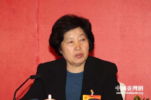 圖為全國人大代表、中共福建省委書記孫春蘭在審議政府工作報告 (中國臺灣網 徐維彬 攝)