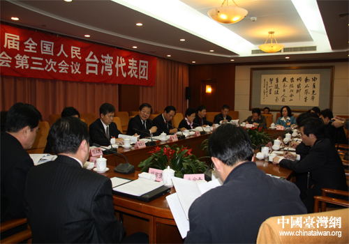 第十一屆全國人民代表大會第三次會議臺灣代表團熱議政府工作報告。(中國臺灣網 胡珊珊 攝影)