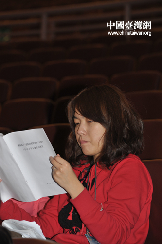 中國汽車報的美女記者在閱讀大會發言材料。 (中國臺灣網發 肖春陽、劉洋)