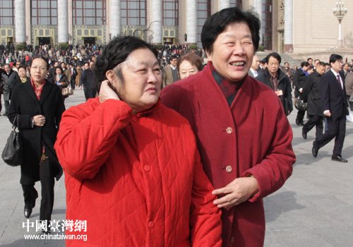 13日上午,全國政協(xié)十一屆三次會議勝利閉幕。這是閉幕后委員們步出人民大會堂。(中國臺灣網(wǎng) 張弛 攝)