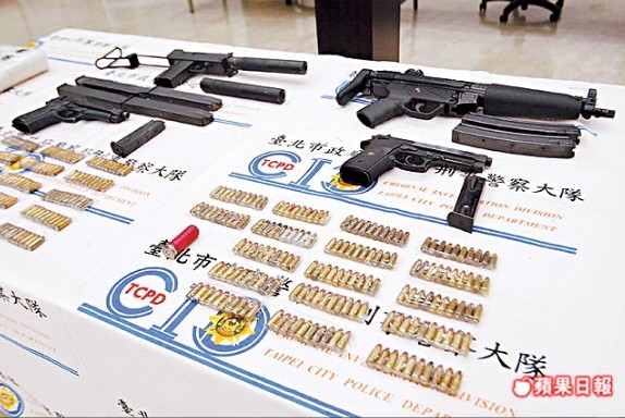 據(jù)臺(tái)灣《蘋果日報(bào)》報(bào)道,臺(tái)北市警方昨天前往林森北路一處套房搜索,當(dāng)場逮捕竹聯(lián)幫地堂“地北會(huì)”會(huì)長黃健嘉、藍(lán)姓小弟及其楊姓女友等人,并搜出臺(tái)軍特勤人員使用的美制制式M10沖鋒槍及德制制式MP5A3沖鋒槍各一把,另有美制和巴西制92制式手槍、325發(fā)子彈,火力相當(dāng)強(qiáng)大。