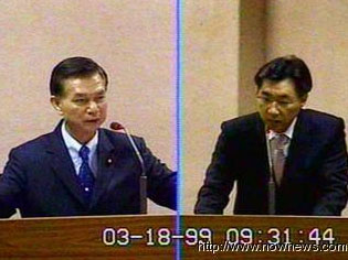 女婿臺當局“新聞局長”江啟臣(右)接受岳父民代劉盛良(左)的質詢。 來源臺灣“今日新聞網”