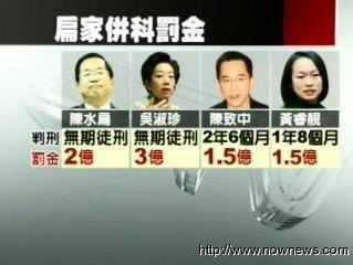 陳水扁并科罰金2億、吳淑珍3億,陳致中和黃睿靚都是1.5億,加起來共是8億新臺(tái)幣。圖片來源:臺(tái)灣“今日新聞網(wǎng)”