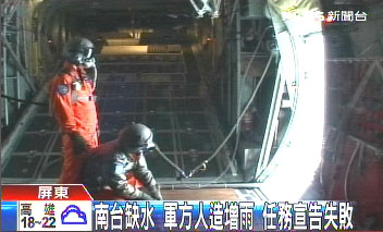 臺軍士兵在C130運輸機上實施人工增雨作業(yè)。 來源:臺灣TVBS電視臺