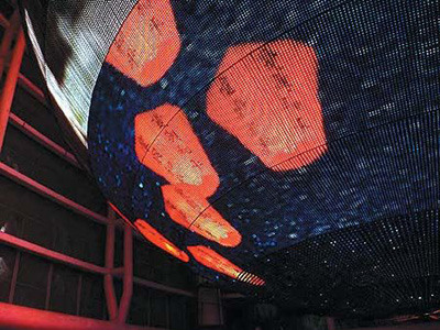 臺灣躍獅科技創意總監姚開陽表示,這是由12臺大型專業投影機自球的兩端經無接縫拼接方式達成的,不僅如此,還有來自環繞四周的8聲道音源,以及多種4D特效搭配,讓觀眾看到花時會聞到花香,看到海豚跳躍時感受到海水飛淺的快感,這是完全由臺灣自行研發的系統,在全球還是首創。