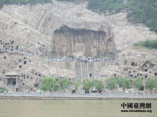從遠(yuǎn)處眺望石窟,更覺壯美異常。(中國臺灣網(wǎng) 朱毅 攝)