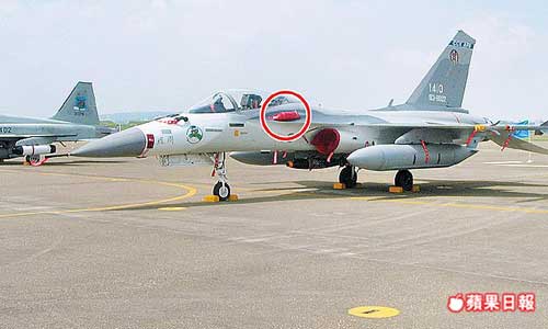 臺空軍臺南聯(lián)隊去年11月發(fā)生IDF戰(zhàn)機飛行員誤觸電門,擊發(fā)25發(fā)機炮,紅圈處為機炮位置。圖片來源:臺灣《蘋果日報》