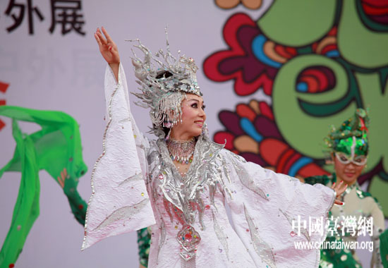 記者會上,臺北文化周“小露一手”,臺北市立交響樂團(tuán)的管樂五重奏、明華園歌仔戲劇團(tuán)“無敵小生”孫翠鳳以“白娘子”造型驚艷亮相,再配合會場周邊的街頭表演,精彩的節(jié)目緊緊抓住了上海市民的心。現(xiàn)場喝彩不斷,甚至有孫翠鳳的粉絲尖叫助威。當(dāng)天的表演雖然只是片段,但卻成為臺北文化周最精彩的“片花”。 (記者 田云鵬)