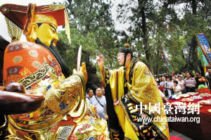 據(jù)了解,為弘揚關(guān)公精神,洛陽關(guān)林與臺灣中華道教關(guān)圣帝君弘道協(xié)會、臺灣高雄縣關(guān)帝廟、福建泉州通淮關(guān)岳廟等達成共識,由洛陽關(guān)林出資特制了一尊坐高127厘米、重100多公斤的巡游關(guān)圣帝君神像,于今年6月赴福建、臺灣巡游,并依次進駐臺灣102座關(guān)帝廟,進行為期一年的文化交流活動。