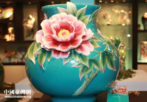 圖為第三屆海峽兩岸文博會臺灣文創(chuàng)展區(qū)展出的法藍瓷花瓶。(中國臺灣網(wǎng) 高斯斯 攝)