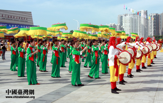 文藝團體在會場前表演節目慶祝第三屆海峽兩岸文博會開幕。(中國臺灣網 張弛 攝)