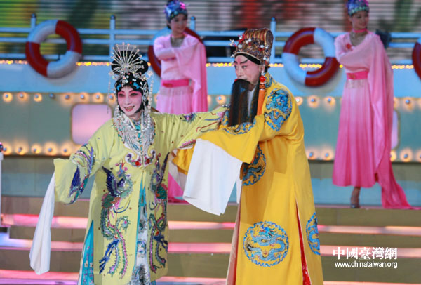梅葆玖、李寶春兩位海峽兩岸的藝術家在第二屆海峽論壇晚會上演繹京劇《長生殿》選段。(中國臺灣網 鐘寶華 攝)