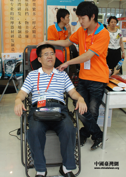 觀眾親身體驗(yàn)高科技電器帶來的舒適 (中國臺灣網(wǎng) 王偉 攝)