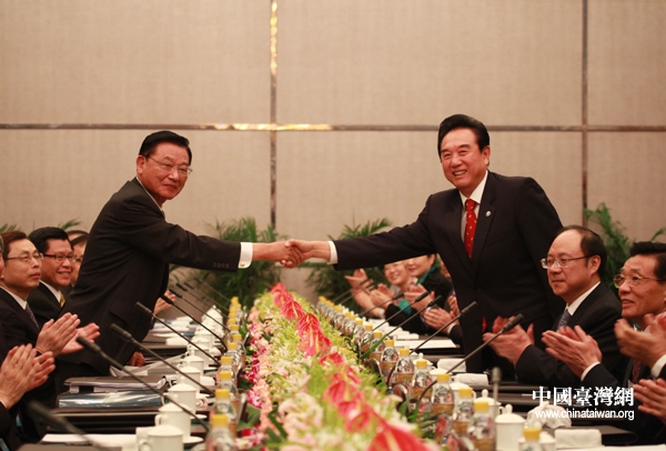 陳云林首先向江丙坤董事長和海基會協商代表團的所有朋友表示誠摯歡迎,并向關心、理解、支持兩岸制度化協商的兩岸同胞和為會談付出辛勤勞動的兩岸專家表示感謝。