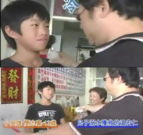 家在花蓮市開眼鏡行的溫宏仁表示,前天接到醫(yī)院急診室電話,才知道兒子溫定超跟著其它同學(xué)跑去海邊玩水,“溺水差一點(diǎn)就回不來”?戳嗣襟w報道,獲悉是簡志豪救了兒子,昨天特別帶了紅包及豬腳面線跑到簡家開的面店當(dāng)面致謝。