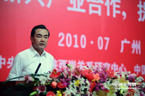 7月11日下午,第六屆兩岸經貿文化論壇在廣州閉幕,中國國民黨副主席蔣孝嚴和中共中央臺辦主任王毅共同主持閉幕式。圖為中共中央臺辦主任王毅在閉幕式上對本屆論壇進行小結。(中國臺灣網 鐘寶華 攝)