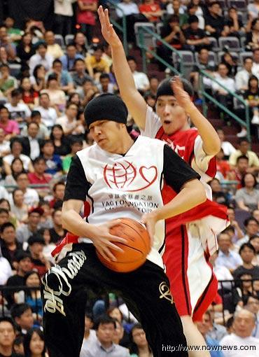 中國臺灣網(wǎng)7月29日消息 據(jù)臺灣媒體報道,姚明登高一呼,“周董”周杰倫、“小豬”羅志祥昨率10名藝人,參加“2010姚基金慈善之旅”臺北站慈善表演賽。周董、小豬在NBA球星面前不改“愛秀”個性,雖技不如人,但花招不少,逗得現(xiàn)場球迷笑聲不斷。