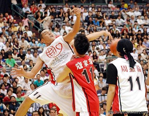 姚明喂球喂到手癢,在陶子慫恿下,也站到3分線挑戰(zhàn)24秒投籃,飆3分球雖不是姚明擅長,他也飆進(jìn)3球,保住NBA球星面子。第二節(jié)暫停時,“老蕭”蕭敬騰、炎亞綸也加入罰球義捐,兩人分別投進(jìn)4球、6球。總計24秒投籃義捐,聯(lián)華電子共捐出53萬元。
